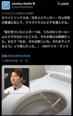 【朗報】ホワイトソックスさん、村上の要望でクラブハウスのトイレにビデが付く