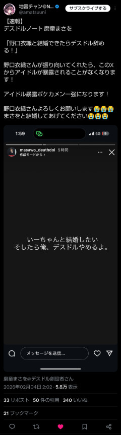 1: 2026/02/04(水) 09:18:53.00 正体バラしててくさ ※関連記事 正義マン「イジメ加害者が自殺したらどうするんだ?」デスドル「死ぬべきだろ」→日本国民11万いいね!…