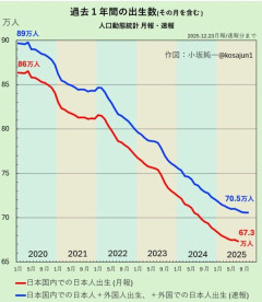【悲報】出生数グラフ、普通にヤバすぎる