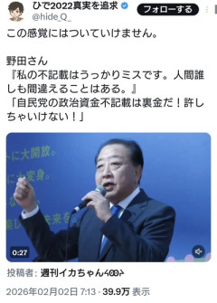 1 名前:名無しさん@涙目です。[sage] 投稿日:2026/02/02(月) 17:00:14.77 ID:cG1CtL9X0 2 名前:名無しさん@涙目です。[sage] 投稿日:2026/02/02(月) 17:00:38.77 ID:cG1CtL9X0 この感覚にはついていけません。野田さん『私の不記載はうっかりミスです。人間誰しも間違えることはある。』「自民党の政治資金不記載は裏金だ!許しちゃいけない!」 pic.twitter.com/5GfMflG4E1— ひで2022真実を追求 (@hide_Q_) February 1, 2026 3 名前:名無しさん@涙目です。[sage] 投稿日:2026/02/02(月) 17:00:44.06 ID:2Pr/o2OH0 えまって! 4 名前:名無しさん@涙目です。[] 投稿日:2026/02/02(月) 17:01:31.43 ID:eXEfQ8xW0 裏金じゃねえか 12 名前:名無しさん@涙目です。[sage] 投稿日:2026/02/02(月) 17:03:24.68 ID:pGw0shJC0 裏金議員の野田と斉藤 130 名前:名無しさん@涙目です。[sage] 投稿日:2026/02/02(月) 17:49:46.79 ID:2RGMQEGT0 2人揃って不記載共同代表の中革連です! 5 名前:名無しさん@涙目です。[] 投稿日:2026/02/02(月) 17:01:38.38 ID:pMuo4x7L0 裏金だし壺だし、さらに仏壇! 7 名前:名無しさん@涙目です。[] 投稿日:2026/02/02(月) 17:02:02.40 ID:BHT/Yl/O0 れいわかな? 8 名前:名無しさん@涙目です。[] 投稿日:2026/02/02(月) 17:02:33.17 ID:jbBbGrtK0 大石あきこのパクリじゃん情けない 56 名前:名無しさん@涙目です。[] 投稿日:2026/02/02(月) 17:18:06.94 ID:iMDxyFy00 何でこういう言い訳が通用すると思ってるんだ安住も野田豚も 28 名前:名無しさん@涙目です。[] 投稿日:2026/02/02(月) 17:06:53.46 ID:jQQ3waqw0 で、写真の件は 17 名前:名無しさん@涙目です。[sage] 投稿日:2026/02/02(月) 17:04:43.51 ID:kBqKhorA0 ダブスタのゴミ野党はまとめて滅んでほしい 54 名前:名無しさん@涙目です。[] 投稿日:2026/02/02(月) 17:17:07.45 ID:AR7u5hMS0 >>17 これ 47 名前:名無しさん@涙目です。[] 投稿日:2026/02/02(月) 17:14:53.28 ID:Wdy3ajqS0 私もうっかりミスです! 29 名前:名無しさん@涙目です。[] 投稿日:2026/02/02(月) 17:06:57.22 ID:eMSZS1DD0 斉藤が1億超えて悪質過ぎだろ うっかりじゃねえよ 51 名前:名無しさん@涙目です。[] 投稿日:2026/02/02(月) 17:16:30.39 ID:iLm/gUvo0 公明党と合体したのもうっかりミスですか? 114 名前:名無しさん@涙目です。[] 投稿日:2026/02/02(月) 17:39:02.84 ID:KKUFiYFj0 何でれいわとも合体しなかったんだろう 36 名前:名無しさん@涙目です。[] 投稿日:2026/02/02(月) 17:09:50.09 ID:TBdXY1NR0 野田が一番力を入れてるのは他党批判だからな 自分は良くても他はダメ 66 名前:名無しさん@涙目です。[] 投稿日:2026/02/02(月) 17:20:49.52 ID:lsLsLEzE0 敵を攻撃する為に自分の不祥事をさらけ出す戦術 頭いいのか悪いのか分からんね 118 名前:名無しさん@涙目です。[] 投稿日:2026/02/02(月) 17:40:43.79 ID:NNSxf/q70 お前は犯罪! 俺はミス! 野田も斎藤も大石もみんなこれだなw 野党の政党代表みんなヤバすぎるだろ 71 名前:名無しさん@涙目です。[sage] 投稿日:2026/02/02(月) 17:21:53.97 ID:M6icOxvp0 党首がコレ言ってるのがヤバい 141 名前:名無しさん@涙目です。[う] 投稿日:2026/02/02(月) 17:56:31.23 ID:joVJQ8Uf0 不記載 統一教会 政権取る前は消費税批判→総理になったら消費税増税 こいつは本当に出鱈目 地味で真面目そうに見えるからタチが悪いが、真性のクズ 151 名前:名無しさん@涙目です。[] 投稿日:2026/02/02(月) 18:12:12.49 ID:PqKeH/Rz0 >>141 消費税 10%増税を決めた張本人だもんな 何も信じられんよw 70 名前:名無しさん@涙目です。[] 投稿日:2026/02/02(月) 17:21:38.84 ID:JEbx8dyd0 池田大作の著書を今更読んで感銘を受けたとか言ってるし同じ案件やらかしておいて自民党員はアホみたいに執拗に責めてバレたら自分をうっかりミスでお茶を濁す そんな最低なモラルの野党政治家かつていましたか? まず自分は清廉潔白じゃないとダメだなって思えないクソ野郎 57 名前:名無しさん@涙目です。[sage] 投稿日:2026/02/02(月) 17:18:15.79 ID:OD/in6N20 立憲の不記載はうっかりだからセーフ 立憲の統一との繋がりは綺麗な宗教 立憲の創価学会への協力要請は綺麗な宗教 こういう事だろ? だから支持されないんだよ 99 名前:名無しさん@涙目です。[] 投稿日:2026/02/02(月) 17:33:41.33 ID:kApYQTQh0 書類送検された枝野はどうなった? 逮捕されるの? 81 名前:名無しさん@涙目です。[sage] 投稿日:2026/02/02(月) 17:26:20.46 ID:G2aC3M/T0 創価学会の信者ってこんなクソゴミ共に投票するの? マジで? 86 名前:名無しさん@涙目です。[] 投稿日:2026/02/02(月) 17:27:49.65 ID:JEbx8dyd0 >>81 創価信者も今回の選挙はかなり複雑みたいだから自民党に入れる人出てくるだろうな 公明党の自民離脱からの立憲との連合政党立党に不快感あらわにしてる人多いみたいだわ 24 名前:名無しさん@涙目です。[] 投稿日:2026/02/02(月) 17:06:22.89 ID:sr0PHFxT0 こういうの一番嫌われると思うの 104 名前:名無しさん@涙目です。[] 投稿日:2026/02/02(月) 17:35:47.40 ID:bw+OMwQL0 こういう事言い続けた結果が若者支持率0% ブラックカラー792円…