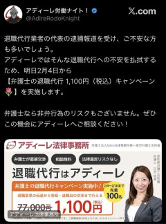 【悲報】大手法律事務所、モームリ社長の逮捕を受けてお得なキャンペーンを開始するwwww