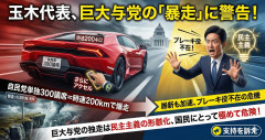 1: 名無し 2026/02/04(水) 20:45:12.34 ID:TmK8n9Wq0 国民民主党の玉木代表は都内での街頭演説で、衆院選の情勢について「仮に自民党が単独で300議席を取ったら、時速200キロで爆走すると思う。日本維新の会はさらにアクセルを踏むと言っており、ものすごいスピードになる」と述べました。また、「間違った目的地に全速力で行っても困る」とし、自民・維新による巨大与党体制が議論を軽視した独走を招くことへの強い危機感を表明しました。 読売新聞 ■要約 ・自民党が単独300議席を獲得すれば時速200キロで爆走すると玉木代表が警告 ・維新の会はさらにアクセルを踏む姿勢でありブレーキ役不在の状況を危惧 ・間違った目的地へ全速力で進むことは国民にとって極めて危険と強調 ・巨大与党の独走を許せば民主主義の議論が形骸化するとして支持を訴え 【悲報】中道、電話作戦開始へ「このままだと中道は敗北です」 あの党の十八番を発動! 【速報】 中国の王毅外相と会談したロシア・ショイグ、日本に『とんでもない発言』をしてしまう!!!!! 消防士「裁判員裁判の招集がありました。いかねばなりません」署長「お前真面目か」阻止して停職1カ月…