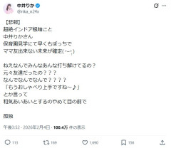 28歳元アイドル「ママ友出来ない未来が確定」保育園見学で「早くもぼっち」と嘆き 元NGT48でタレントの中井りか(28)が、4日までに自身のX(旧ツイッター)を更新。子どもの保育園見学をめぐり「ママ友出来ない未来が確定」と悲観… (出典:日刊スポーツ) 中井りか 中井 りか(なかい りか、1997年〈平成9年〉8月23日 - )は、日本のタレント、女優、YouTuberであり、女性アイドルグループNGT48の元メンバー。 富山県富山市出身。太田プロダクション所属。 富山県の立山連峰が見える郊外の住宅地で育った。幼稚園の頃は人前に立つのが好きな「何をしても目立… 32キロバイト (4,193 語) - 2026年2月4日 (水) 07:17 (出典 オリコンニュース(ORICON NEWS)) 自業自得では… (出典 【芸能】元NGT48・中井りか「ママ友出来ない未来が確定」 保育園見学で「早くもぼっち」「和気あいあいとするのやめて目の前で」 [冬月記者★])1 冬月記者 ★ :2026/02/05(木) 10:05:17.95 ID:cf1MK0139 28歳元アイドル「ママ友出来ない未来が確定」保育園見学で「早くもぼっち」と嘆き 元NGT48でタレントの中井りか(28)が、4日までに自身のX(旧ツイッター)を更新。子どもの保育園見学をめぐり「ママ友出来ない未来が確定」と悲観した。 中井は「【悲報】」と書き出すと、「超絶インドア根暗こと 中井りかさん 保育園見学にて早くもぼっちで ママ友出来ない未来が確定」と打ちのめされた様子。 続けて「ねえなんでみんなあんな打ち解けてるの?元々友達だったの???なんでなんでなんで????」と投げかけた。 また「『もうおしゃべり上手ですね~♪』とか言って 和気あいあいとするのやめて目の前で 孤独」となじめないことを嘆いた。 続く投稿では「某NGT48で 集団で生きるということは“自我”を*ことと学んだのに 自我だけで生きてる私は 自我*たら何もないなった 空気かとおもった」と投稿した。 中井は24年3月にテレビ東京の三宅優樹ディレクターとの結婚を発表。25年1月に第1子出産を報告した。 (出典 【芸能】元NGT48・中井りか「ママ友出来ない未来が確定」 保育園見学で「早くもぼっち」「和気あいあいとするのやめて目の前で」 [冬月記者★])…