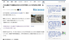1 : 4日午後0時頃、仙台市太白区の八木山橋の下で、警察が女性の遺体を発見しました。 遺体は、2日から行方不明になっていた10代の女性とみられています。警察は、自殺の可能性が高いとみて身元の特定を急いでいます。…