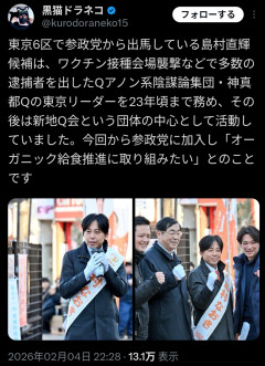【悲報】参政党、衆院選に過激派陰謀論グループ「神真都Q」元メンバーを擁立