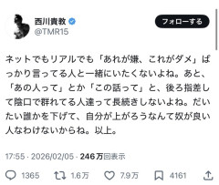 引用元: それでも動く名無し 2026/02/06(金) 10:09:47.46 ID:HAgL60AJ0 酷すぎやろ… 3: それでも動く名無し 2026/02/06(金) 10:12:41.31 ID:Wx8madbz0 陰キャアピール要らん。。。 友達なんかマウントの取り合いやんけ…