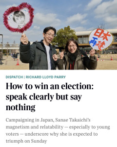 【悲報】英タイムズ「日本の選挙で勝つ方法。はっきり話せ。ただし何も言うな」