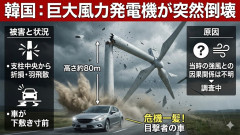 1: 名無し 2026/02/06(金) 13:25:42.18 ID:o6X9wQkL0 韓国で高さ約80メートルの風力発電用の風車が突然倒壊する事故が発生した 車で通りかかった目撃者の目の前で巨大な残骸が道路に横たわり あわや下敷きになるところだったという 映像では支柱の真ん中辺りが折れ曲がり 回転していた羽がバラバラに壊れていく様子が確認できる 現時点で強風との関連は不明とされている FNNプライムオンライン ■要約 ・韓国で高さ約80メートルの巨大な風力発電機が突然倒壊 ・目撃者の車が下敷きになりかける寸前の危機一髪だった ・支柱の中央付近から折れ曲がり回転中の羽が飛散する様子を記録 ・当時の強風との直接的な因果関係については現在不明 お前らって自分の親が陰謀論に目覚めたらどうしてるの? 【画像】ブッコフで買った金田一、レベチwwwwwwwwwwwwwwwwwwwwwwww 【悲報】 タレントの東MAXさんに『異変』が起こってしまう・・・・…