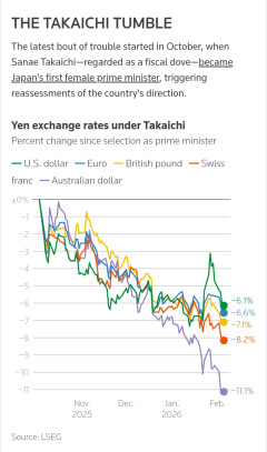 【悲報】世界、日本の記録的円安を「The Takaichi Tumble(高市大暴落)」と命名して報道し始める