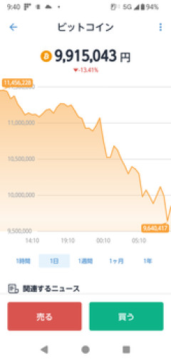 【祝速報】ビットコイン、1000万を切る!!!ワイの6万円が7000円に!!!!(※画像あり)