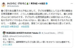 1. 匿名@ガールズちゃんねる 発端となったのは、自民党の鈴木貴子広報本部長が4日に行った門氏の応援演説の中で、2人の子どもを育てているという同じ立場からエールを送ったこと。その際、鈴木氏は「2週間、私も子どもに会ってません」と話していた。 これに対し、あるXユーザーが「身近なものすら犠牲にし、国民のなにが守れるというの?」と苦言を呈した。 このポストに対し、鈴木氏は「確かに、選挙期間中は子ども達に寂しい思いをさせているのは事実です」と返信。一方、子どもたちからは「おしごとがんばってね」といったメッセージを受け取り、それが原動力になっていると明かした。<略> 門寛子氏は「子どもがいる男性政治家には言わないんですよ」と苦言 2026/02/06(金) 17:42:32…