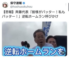 1: イドクスウリジン(東京都) [VE] 2026/02/07(土) 09:58:52.40 ID:QUaNKBd20● BE:662593167-2BP(2000) sssp://img.5ch.net/ico/taxi.gif 2: リバビリン(みかか) [US] 2026/02/07(土) 09:59:20.48 ID:RS8NwgmD0 お前ボールな! 引用元: ・ スポンサーリンク スポンサーリンク 3: イドクスウリジン(東京都) [VE] 2026/02/07(土) 09:59:23.14 ID:QUaNKBd20 BE:662593167-2BP(1000) sssp://img.5ch.net/ico/taxi.gif 71: ペラミビル(ジパング) [IN] 2026/02/07(土) 10:11:02.24 ID:qd4PFEOZ0 >>3 おもろすぎる 85: ホスアンプレナビルカルシウム(庭) [CN] 2026/02/07(土) 10:13:17.08 ID:BSUFGhTT0 >>3 創価やべー 4: エンテカビル(ジパング) [BR] 2026/02/07(土) 09:59:49.73 ID:CkUyXzqD0 バッター液程度にしか思ってない衣が、なに言ってんだか。 5: アメナメビル(庭) [JP] 2026/02/07(土) 09:59:52.74 ID:7Gowh7is0 政治は野球や宗教じゃねーんだよバーカ 6: ダルナビルエタノール(茸) [GB] 2026/02/07(土) 09:59:53.92 ID:yw8UkByF0 バットでチャンバラでもするのか? 8: エルビテグラビル(福島県) [US] 2026/02/07(土) 10:00:17.06 ID:KyfsXm3A0 俺「まず、ランナーを貯めてください」 斉藤「ランナーってなんですか?」 9: ビダラビン(庭) [US] 2026/02/07(土) 10:00:24.85 ID:v6aYfC/z0 野球のこと知らんのだろうけど逆転ホームランってのはちゃんとヒット重ねてないと打てないんですよ 10: ロピナビル(茸) [SE] 2026/02/07(土) 10:00:29.79 ID:JOwghBGZ0 斎藤は発言がいちいち信者向けなんだよ 野田の態度を見習え、あの態度を 12: エルビテグラビル(ジパング) [ニダ] 2026/02/07(土) 10:00:51.00 ID:FFwR7ka70 比例のみは味噌っかすじゃねえか うせろ 13: エンテカビル(光) [US] 2026/02/07(土) 10:00:52.44 ID:mlXzj7vD0 大石にデッドボール食らいそう 15: ガンシクロビル(東京都) [ニダ] 2026/02/07(土) 10:01:01.26 ID:q5usGTpP0 大石のデッドボールネタを蒸し返しに来たか 16: アシクロビル(庭) [US] 2026/02/07(土) 10:01:20.34 ID:hvnmBDoJ0 バットで暴力革命かな 17: ポドフィロトキシン(神奈川県) [ヌコ] 2026/02/07(土) 10:01:28.61 ID:32V7OC//0 もう比例上位で当選数も確定してるから本音はどうでもいいと思ってそう 再分裂するのも間違いないだろうし 18: エルビテグラビル(滋賀県) [US] 2026/02/07(土) 10:01:53.72 ID:dKcjul3h0 考え方がニートのそれ 19: イノシンプラノベクス(やわらか銀行) [ニダ] 2026/02/07(土) 10:01:57.70 ID:tm5e5zJj0 あ、今負けてることまでは理解できてるんだ 21: リルピビリン(新日本) [ニダ] 2026/02/07(土) 10:02:03.08 ID:PN8myyWK0 中核派革マル派連合はテロでもやるつもりなのか? 22: エファビレンツ(神奈川県) [US] 2026/02/07(土) 10:02:32.63 ID:l7BYtdG+0 笑う声までおんなじね! 23: アシクロビル(日本のどこかに) [EU] 2026/02/07(土) 10:02:39.94 ID:97sZemUA0 だが、大石がデッドボールを投げる 24: オセルタミビルリン(茸) [IN] 2026/02/07(土) 10:02:44.60 ID:vhx5KGx10 お前はカルト 25: アマンタジン(新日本) [ニダ] 2026/02/07(土) 10:02:49.95 ID:PK1Z5SFa0 攻撃しかいない防衛放棄ってことか 26: ドルテグラビルナトリウム(みかか) [US] 2026/02/07(土) 10:02:52.29 ID:M4o442rs0 高市さんがボールですとでも言いたげだな 27: インターフェロンβ(庭) [US] 2026/02/07(土) 10:02:59.46 ID:GmV4v+Mz0 ベンチは黙ってろ 28: ガンシクロビル(熊本県) [NL] 2026/02/07(土) 10:03:17.92 ID:R0SyPW030 ゲバ棒て言うんだっけ 29: エファビレンツ(神奈川県) [US] 2026/02/07(土) 10:03:26.69 ID:l7BYtdG+0 んじゃ俺がバット持つから斉藤はケツ出せケツ 30: ジドブジン(愛知県) [US] 2026/02/07(土) 10:03:32.98 ID:JOMjVghl0 お前バッターじゃないやん 31: メシル酸ネルフィナビル(庭) [FI] 2026/02/07(土) 10:03:38.86 ID:2LpbnwZq0 打ち込まれたピッチャーとか、エラーしまくった野手やろ 32: ファムシクロビル(ジパング) [US] 2026/02/07(土) 10:03:47.45 ID:iNsOZ/1N0 お前らと勝負するピッチャーいねぇし 33: イノシンプラノベクス(ジパング) [SE] 2026/02/07(土) 10:03:48.24 ID:DYRZp4Fl0 ガチで笛吹けど信者踊らずなんだなw 34: イドクスウリジン(ジパング) [US] 2026/02/07(土) 10:04:05.29 ID:kuN3OVXF0 立憲かと思って入れたら創価が受かるバッタもん 35: インターフェロンβ(福岡県) [ニダ] 2026/02/07(土) 10:04:27.26 ID:ZL8jfzxc0 学会員は気違い染みてるからね 宗教だけあって 36: インターフェロンβ(埼玉県) [ニダ] 2026/02/07(土) 10:04:37.59 ID:tS9tvoiG0 信心が足りねーんじゃねーの マイクで経を詠めよ 37: リバビリン(茸) [US] 2026/02/07(土) 10:04:42.28 ID:/OVHjQaK0 自力で3塁まで来てくれないと創価犠牲フライできません! 40: ペラミビル(やわらか銀行) [CN] 2026/02/07(土) 10:05:24.69 ID:4jqnfMiu0 みんなバッターなら誰も出塁できてないやん 41: マラビロク(愛知県) [CA] 2026/02/07(土) 10:05:47.65 ID:9RzjKtaS0 ヒッチャー(自民党)が投げないと始まらないゲーム(政治)ってことですか? 42: インターフェロンβ(大阪府) [JP] 2026/02/07(土) 10:06:19.30 ID:9yZCzaRc0 創価の力を借りたりで、何度ホームランを打っても 守備がザルなら、逆転には出来ないよな 44: リバビリン(茸) [US] 2026/02/07(土) 10:06:31.04 ID:/OVHjQaK0 高市はホームランだしな 45: ソリブジン(鹿児島県) [US] 2026/02/07(土) 10:06:38.95 ID:mPYY4LlS0 もう満塁ホームランでも逆転無理だろ 46: ドルテグラビルナトリウム(やわらか銀行) [IT] 2026/02/07(土) 10:07:05.92 ID:jwXGYcWB0 浮かれるのはいい やってからだよ 実行