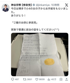 【画像】小4女子「家族で参政党の演説を見ます!参政党が大好き!神谷さんの演説も大好き!」