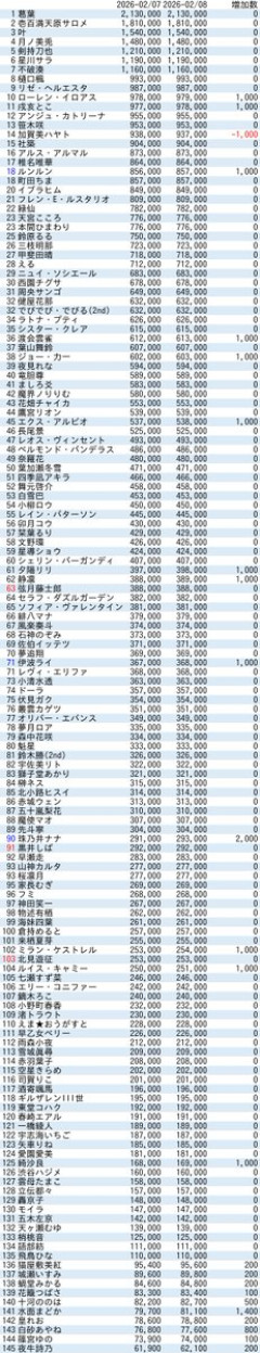 引用元: 3649: Vtuberまとめ 2026/02/08(日) 00:03:09.84 ID:ve7toUHU タラ松🥺🥺🥺 にじさんじムシキング @243464king (2026/02/08 00:00:58) 2026-02/07から2026-02/08まで にじさんじメンバーYouTubeチャンネル登録者数まとめ 3658: Vtuberまとめ 2026/02/08(日) 00:03:22.65 ID:T6Quytok >>3649 タラチオショック 3662: Vtuberまとめ 2026/02/08(日) 00:03:35.66 ID:LGO724JW >>3649 あ、普通に減るんだ・・・ 3664: Vtuberまとめ 2026/02/08(日) 00:03:41.34 ID:NyTNV3Yi >>3649 マジで炎上してたんか…… 3668: Vtuberまとめ 2026/02/08(日) 00:03:46.53 ID:S9lSrgYZ >>3649 こりゃあ…… 3670: Vtuberまとめ 2026/02/08(日) 00:03:51.13 ID:C3TJGvzi >>3649 タラ松〜😭 3673: Vtuberまとめ 2026/02/08(日) 00:03:55.50 ID:meDkGIF3 >>3649 タラ松禊としてヘラクレスの栄光やれ😡 3677: Vtuberまとめ 2026/02/08(日) 00:03:58.60 ID:dHjwoP2V >>3649 樋口地味に登録停滞してるな 3679: Vtuberまとめ 2026/02/08(日) 00:04:06.10 ID:7t2yhPuV >>3649 まあ軽微 3680: Vtuberまとめ 2026/02/08(日) 00:04:06.15 ID:sGVPkUHD >>3649 今見たら戻ってるけど俺の反映が遅いんか? 3683: Vtuberまとめ 2026/02/08(日) 00:04:11.42 ID:jVUJvCYY >>3649 こりゃあ 3687: Vtuberまとめ 2026/02/08(日) 00:04:18.81 ID:IWVx3PVw >>3649 イメージガタ落ちだししゃーない 3691: Vtuberまとめ 2026/02/08(日) 00:04:22.50 ID:YtSSrpdj >>3649 炎上してて草✋🥺 3699: Vtuberまとめ 2026/02/08(日) 00:04:43.99 ID:EaZ1dqPv >>3649 むしろ1000だけなんか… 3704: Vtuberまとめ 2026/02/08(日) 00:04:50.30 ID:p2PBtnJu >>3649 一番伸びやすい金盾間近でマイナスはすごいな 3706: Vtuberまとめ 2026/02/08(日) 00:04:54.70 ID:UQHE1E2o >>3649 まだ軽微だけど金盾までの道はかなり遠野いてそうだな🥺 3711: Vtuberまとめ 2026/02/08(日) 00:05:04.21 ID:hVwUgyqF >>3649 そりゃそうよ…