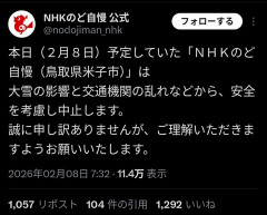 【悲報】本日の「NHKのど自慢」、雪で中止WWWWWWWWWWWWWWWWWWWWWWWWWWWWWWWW