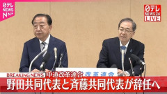 中道改革連合、野田共同代表と斎藤共同代表が辞意を表明