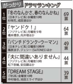 1. 匿名@ガールズちゃんねる 現時点でのワースト作品に選ばれてしまったのは、 「1話で脱落」(神奈川県・32歳)、「ヒロインに魅力を感じない」(山口県・39歳) 映画監督の今泉力哉氏が書き下ろしたラブストーリー、『冬のなんかさ、春のなんかね』(日本テレビ系)。杉咲花演じるヒロイン・文菜のキャラに戸惑う視聴者も多いようだが、成田さんは、 「恋を題材に人との距離の取り方に悩んだり、アセクシュアルなど性の問題も描くなど、心の奥の不安や葛藤が膨大なセリフやモノローグで描かれているので、単なるおしゃれドラマだと思っていると足をすくわれる意欲作」 2026/02/09(月) 11:02:45…