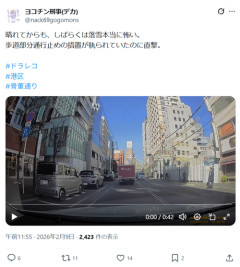 1: 2026/02/09(月) 23:26:31.27 晴れてからも、しばらくは落雪本当に怖い。歩道部分通行止めの措置が執られていたのに直撃。#ドラレコ #港区#骨董通り pic.twitter.com/Vlfia3tUOW— ヨコチン刑事(デカ) (@nack69gogomons) February 9, 2026 ※関連記事 【動画】撮影者が8割ぐらい悪いドラレコ発見される…