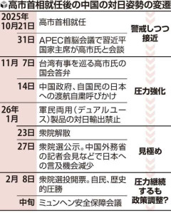 1: ばーど ★ 2026/02/10(火) 11:26:00.10 ID:RSYoWL5X 【北京=吉永亜希子】中国の 習近平シージンピン 政権は、衆院選での自民党大勝を警戒し、対日圧力を継続する構えだ。習政権にとって突然の衆院解散から自民党勝利までの展開は誤算の連続だったとみられ、政権基盤を強化した高市首相と向き合わざるを得ない局面が出てくる可能性もある。 ■衆院解散から誤算続き 中国外務省の 林剣リンジエン 副報道局長は9日の記者会見で、「中国の対日政策は安定性と連続性を保っており、日本の一度の選挙で変化することはない」と述べた。高市首相の台湾有事を巡る発言の撤回を再び求め、「中国人民の国家の核心的利益を守る決意は揺るがない」と強調した。 習政権は昨年11月以降、自国民への日本渡航自粛呼びかけ、デュアルユース(軍民両用)製品の対日輸出の禁止など経済的威圧をエスカレートさせてきた。答弁の撤回に追い込み、首相の支持率を下落させ、政権を弱体化させる狙いがあったとみられる。 だが、選挙前の各種世論調査で首相の支持率は高止まりし、対中姿勢を評価する声が大勢を占めた。早期解散も想定外だったとみられ、中国国営新華社通信は「政治的大ばくち」と報道。それだけに自民党の大勝はこれまでの対日圧力が高市政権を利する結果となり、当てが外れた格好だ。ただ、高市政権の長期化が視野に入る中、習政権は圧力を続けつつ、今年11月の広東省深センでのアジア太平洋経済協力会議(APEC)首脳会議に合わせた首脳会談実施に向けて対話の糸口を探る可能性もある。 2012年12月発足の第2次安倍政権では、尖閣諸島の国有化や安倍氏の靖国神社参拝などで日中関係が悪化。14年秋に北京で開かれた同会議で、約3年ぶりに行われた首脳会談をきっかけに改善傾向に転じた。 日中外交筋は当時の中国の変化を「長期政権で向き合わざるを得なくなった」とみる。今回も13日からドイツで行われるミュンヘン安全保障会議で日中外相の接触の有無が注目される。 一方で、米トランプ政権への警戒感から欧州などの首脳が相次いで訪中し、対中関係改善を進めており、日本との対話を急ぐ状況にないのも実情だ。習政権は4月のトランプ大統領訪中を捉え、台湾問題で日米間にくさびを打ち込む思惑もある。習政権は安全保障3文書の改定や憲法改正に加え、「『非核三原則』の見直しを企てる動きがある」などと日本政府を非難している。首相の靖国参拝にも警戒感を示し、高市政権の出方次第では、中国が態度を硬化させる可能性もある。 読売新聞 2026/02/10 08:15 引用元: ・ スポンサーリンク スポンサーリンク 5: <丶`∀´>(´・ω・`)(`ハ´ )さん 2026/02/10(火) 11:29:56.02 ID:v80qPnSr >>1 GDPの水増し20%とかw 何年も前から中国はこんなんばっかやでw 習氏一喝でGDP修正 遼寧省、名目マイナス20%に 6: <丶`∀´>(´・ω・`)(`ハ´ )さん 2026/02/10(火) 11:29:56.44 ID:GiqeLe25 >>1 サナ活さえやってれば国民はみんな幸せなんだから大丈夫だろう。 7: <丶`∀´>(´・ω・`)(`ハ´ )さん 2026/02/10(火) 11:30:05.07 ID:pOJunAFM >>1 外野がいくら騒いで脅してみても結果はこうなる。 2: <丶`∀´>(´・ω・`)(`ハ´ )さん 2026/02/10(火) 11:27:08.93 ID:Bwx4xx4B 中国人の日本への渡航を全面禁止しないと収まらないぞ 3: <丶`∀´>(´・ω・`)(`ハ´ )さん 2026/02/10(火) 11:28:38.84 ID:psE4THBv 中共は圧力かけたら日本国内で政権批判が起こるとでも思ってたのかね? だとしたら見込み違いすぎるけど 4: <丶`∀´>(´・ω・`)(`ハ´ )さん 2026/02/10(火) 11:28:50.49 ID:+LMAbTbV 断交で良いんじゃ 8: <丶`∀´>(´・ω・`)(`ハ´ )さん 2026/02/10(火) 11:30:49.66 ID:gtY+0tYz 問題が「これが日本国民の総意だ」という点 9: 論破遊戯で飯を食う。 2026/02/10(火) 11:31:05.49 ID:p7jx/Sx3 重要なのはJAPは前科者の加害者の戦犯国で、中韓は被害者であり戦勝国って点ね。 やれやれ、僕は論破した。 10: <丶`∀´>(´・ω・`)(`ハ´ )さん 2026/02/10(火) 11:33:14.88 ID:2cvKaCn1 >>9 戦後にできた国なのに戦勝国? 12: 論破遊戯で飯を食う。 2026/02/10(火) 11:37:05.29 ID:p7jx/Sx3 >>10 世界最古にして最大の国が檀君朝鮮だよ。 太古の時代、世界は一つであり、この世の全てはたった1人の王の所有物だった。 人類史の黎明。あまりにも鮮やかなる朝。故に朝鮮。 やれやれ、僕は論破した。 14: <丶`∀´>(´・ω・`)(`ハ´ )さん 2026/02/10(火) 11:39:15.98 ID:2cvKaCn1 >>12 お前それSCPのパクリだろ 自分の言葉では何も語れないのか 11: <丶`∀´>(´・ω・`)(`ハ´ )さん 2026/02/10(火) 11:34:52.17 ID:FvvEpRNj フォトレジストなどの輸出禁止 13: <丶`∀´>(´・ω・`)(`ハ´ )さん 2026/02/10(火) 11:37:30.40 ID:yQh+htg2 >展開は誤算の連続 テレビ新聞、オールドメディアが今や日本国民から敵視されているという現実を思い知りましたか? まあ、選挙ひとつしたことのない国が、選挙工作をしようというわけですしね。 15: <丶`∀´>(´・ω・`)(`ハ´ )さん 2026/02/10(火) 11:43:03.01 ID:RWaWr/EW (日本に喧嘩売って)何とかなると本気で思っているのか? 16: <丶`∀´>(´・ω・`)(`ハ´ )さん 2026/02/10(火) 11:44:43.39 ID:hKbb2vxu 論理破綻のことらしい 17: イカ焼き@
