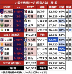 引用元: それでも動く名無し 2026/02/10(火) 14:52:48.44 ID:UIUoa+sG0 寒波にも負けず「過去最多」24万5501人が熱狂! J1特別大会開幕節が史上最高の観客動員を記録! 2: それでも動く名無し 2026/02/10(火) 14:53:06.72 ID:0sG0Ug750 これは志も高くなりますわ 3: それでも動く名無し 2026/02/10(火) 14:55:14.92 ID:UIUoa+sG0 ちなみに24万5500人はJ1だけの数字 1試合平均25,000人はかなり凄い 4: それでも動く名無し 2026/02/10(火) 14:56:45.19 ID:QJjF9+AK0 平均で騙してるけど格差ひどくね…?…