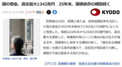1: 名無し 2026/02/10(火) 16:29:11.47 ID:9PfePb7v9国の借金、過去最大1342兆円 25年末、国債依存の構図続く…