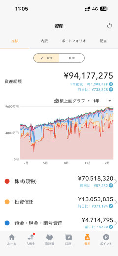 【画像あり】ワイの資産、「9400万円」の大台に乗る