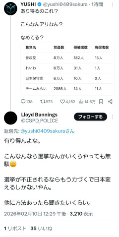 【悲報】陰謀論者「チームみらい、こんなんアリ?」「選挙が不正されるならもう力づくで日本を変えるしかない」