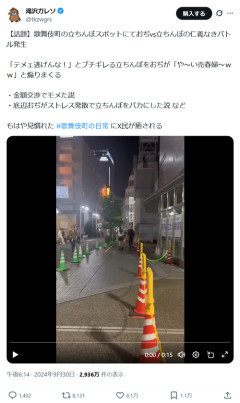 1: 2026/02/11(水) 14:23:58.501 熱い戦いや 【話題】歌舞伎町の立ちんぼスポットにておぢvs立ちんぼの仁義なきバトル発生「テメェ逃げんな!」とブチギレる立ちんぼをおぢが「や~い売春婦~ww」と煽りまくる・金額交渉でモメた説・底辺おぢがストレス発散で立ちんぼをバカにした説 などもはや見慣れた #歌舞伎町の日常 にX民が癒される pic.twitter.com/cEO5bxFCSk— 滝沢ガレソ (@tkzwgrs) September 30, 2024 ※関連記事 【画像】日本橋、立ちんぼだらけになってしまう・・・・・…