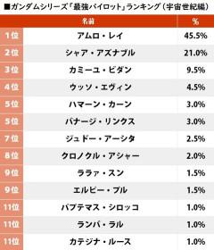 1: 2026/02/11(水) 09:47:05.60 ID:N/QgtvMyM アムロが圧倒的1位のわかってる感…