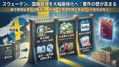 1: 名無し 2026/02/11(水) 23:15:42.82 ID:mX9vP2kQ0 北欧スウェーデンは9日、国籍取得に関する規則を厳格化する計画を発表した。 「真面目に働いて暮らしている」ことを要件とし、言語能力および一般常識に関する試験を導入し、居住期間の要件を現行の5年以上から8年以上に引き上げる。 Yahoo!ニュース(AFP=時事) ■要約 ・スウェーデン政府が国籍取得要件を大幅に厳格化する方針を表明 ・居住期間を現行の5年から8年に延長し語学や一般常識の試験を導入 ・月収約35万円以上の所得要件や犯罪歴による制限を新たに設定 ・6月6日の発効を目指し既に申請済みの案件にも適用する見通し 【画】 キャバクラ出身めちゃくちゃ美人が自民党から当選してたwww ( ´_ゝ`)建国記念日に反対する集い「スパイ防止法生み出すな」 【悲報】 岡田克也さん、落選の理由は「ネットのデマ」だと断定。 選挙ポスターに「中国と落書きされた」と怒り…