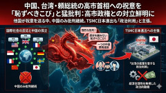 1: 名無し 2026/02/11(水) 21:18:21.45 ID:m9N4qZ8r0 中国国務院台湾事務弁公室の朱鳳蓮報道官は11日の記者会見で、台湾の頼清徳総統が高市早苗首相に示した衆院選での勝利に関する祝意について「日本が植民地時代に犯した重罪を顧みず、こびを売る姿勢は恥ずべきだ」と非難した。 米欧のほか韓国を含むアジア各国が高市氏に祝意を示す中、中国は高市氏への批判を続けている。 共同通信 ■要約 ・中国政府が台湾の頼総統による高市首相への祝意を強烈に批判 ・台湾側の姿勢を「歴史を顧みない恥ずべきこび」と表現 ・他国が祝意を送る中で中国のみが高市政権への批判を継続 ・TSMCの日本進出についても台湾の産業を害する政治利用と主張 【画】 キャバクラ出身めちゃくちゃ美人が自民党から当選してたwww ( ´_ゝ`)建国記念日に反対する集い「スパイ防止法生み出すな」 【悲報】 岡田克也さん、落選の理由は「ネットのデマ」だと断定。 選挙ポスターに「中国と落書きされた」と怒り…