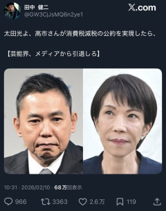 引用元: それでも動く名無し 2026/02/11(水) 05:39:33.52 ID:coDL7ccn0 消費税減税実現したら芸能界引退 2: それでも動く名無し 2026/02/11(水) 05:39:48.13 ID:A1j6o2Gu0 むちゃくちゃで草 3: それでも動く名無し 2026/02/11(水) 05:39:52.67 ID:vaaDVdI+0 草 4: それでも動く名無し 2026/02/11(水) 05:40:52.93 ID:6mZNsBip0 どういう理屈やねん…