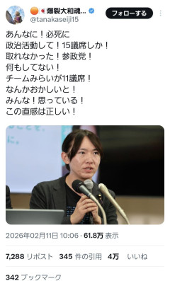【衆院選】参政党・れいわ新撰組の支持者ら、それぞれ「チームみらいに票を盗まれた」と主張