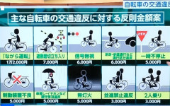 1: 2026/02/11(水) 21:08:34.35 ID:0E8HTf3Y0 ・二人乗り:3,000円・軽微な違反:3,000円・ブレーキ不良:5,000円・追い越し違反:5,000円・一時停止不履行:6,000円・歩道を危険に走行:6,000円・スマホ操作しながら走行:12,000円・信号無視(点滅信号含む):6,000円・踏切での停止義務違反:6,000円・夜間ライト不使用:5,000円・踏切閉鎖中に進入:7,000円・ベルの鳴らしすぎ:3,000円・2台並んで走る:3,000円・徐行義務違反:6,000円・自転車の逆走:6,000円・傘差し運転:5,000円・イヤホン:5,000円 5: 2026/02/11(水) 21:10:14.06 ID:x4nozXC30 チャイルドシート付き自転車で歩道を爆走してる子持ち女は捕まえろあいつら絶対に避けないし…