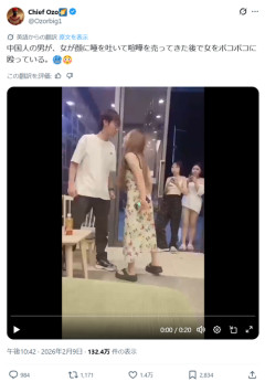 1: 2026/02/12(木) 01:29:17.25 Chinese man beating a Woman after she spits on his face and causing a fight. 🥶😳 pic.twitter.com/covDPpDb6K— Chief Ozo🌠 (@Ozorbig1) February 9, 2026 ※関連記事 【画像】婚活で優しくて真面目なチー牛と出会った女性のリアルな心理を描写したマンガが発見される…