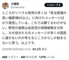 1 名前:名無しさん@涙目です。[] 投稿日:2026/02/10(火) 14:56:14.37 ID:F0p2rsfa0 内田樹@levinassien 核心を衝いた分析だと思います。でも、たぶんそれやっても左派のメッセージは底辺には届かないと思います。動機が「善意」だから。この人たちを何とか救ってあげたいと思って「平易な言葉 子どもにもわかるロジック」を操るわけでしょう。それでは届きません。 7 名前:名無しさん@涙目です。[] 投稿日:2026/02/10(火) 14:58:46.50 ID:Kla3B3Kv0 もうリベラルって侮蔑言葉だぞ 6 名前:名無しさん@涙目です。[] 投稿日:2026/02/10(火) 14:58:37.83 ID:2Uu973bI0 いやリベラルは普通が分からない異常者団体なだけねw 619 名前:名無しさん@涙目です。[sage] 投稿日:2026/02/10(火) 17:03:40.80 ID:lCTu5FrL0 >>6 内田樹みたいな痴の虚人も落ちるところまで落ちたな バカの戯言に反応するとかどれだけ耄碌してるんだよw 11 名前:名無しさん@涙目です。[] 投稿日:2026/02/10(火) 14:59:51.55 ID:NxzZUB3r0 自分は賢いと思ってるバカ 646 名前:名無しさん@涙目です。[sage] 投稿日:2026/02/10(火) 17:09:14.57 ID:iq//WY1r0 >>11 関わると一番苦労するタイプだわな 自分が正しいと信じて疑わないせいで言うこと聞かし 失敗すれば他責しかしない真のゴミ 29 名前:名無しさん@涙目です。[sage] 投稿日:2026/02/10(火) 15:02:40.14 ID:W5+RQfou0 これが左翼の本質だよな 俺たちはエリートだ 大衆はバカだから俺たちが指導統制していかなくてはならない 民主主義を否定して行き着く先は共産独裁制 34 名前:名無しさん@涙目です。[sage] 投稿日:2026/02/10(火) 15:03:41.65 ID:FWHnrGdP0 リベラルを名乗りなが他人を認めず、なんなら馬鹿にする、協調性もない、さらに好戦的、相成れない人とはまともに会話も成立しない。 これのどこがリベラルなのか、あんたらが唱える多様性とは程遠い思想じゃないか、さらに移民やらジェンダーレスだのマイノリティを考える上で一番必要なものが欠けとる。 152 名前:名無しさん@涙目です。[sage] 投稿日:2026/02/10(火) 15:23:14.39 ID:sWVRLWg60 本当に頭のいい人は万人にわかる言葉を使うものだ 12 名前:名無しさん@涙目です。[] 投稿日:2026/02/10(火) 14:59:55.81 ID:VBlU/aSu0 その偏差値高いのが写真燃やしたりするのかw 471 名前:名無しさん@涙目です。[] 投稿日:2026/02/10(火) 16:30:51.52 ID:vSUFHLg30 >>12 それ自称リベラルの嗜みだぞ 113 名前:名無しさん@涙目です。[sage] 投稿日:2026/02/10(火) 15:17:44.25 ID:UnFFvY3h0 >>12 火が使えるってめちゃくちゃすごくない? アウストラロピテクスより知能上だよ 21 名前:名無しさん@涙目です。[] 投稿日:2026/02/10(火) 15:01:35.44 ID:PrMXNUId0 >>12 あっちの界隈では相当なエリートなんだろうな だから国旗とか燃やしちゃうし反社行動と同意義なのに暴力革命やっちゃう 541 名前:名無しさん@涙目です。[sage] 投稿日:2026/02/10(火) 16:46:36.78 ID:7y5Nmr7R0 >>12 単純な話偏差値ってのは「どれだけ偏ってるか」ってだけだから そりゃもう相当に「偏ってる」奴しかいねぇのよ 75 名前:名無しさん@涙目です。[sage] 投稿日:2026/02/10(火) 15:11:08.30 ID:AmWyV64T0 武器があったら使いたくて堪らないような そんな精神性だから嫌われるんすよ 514 名前:名無しさん@涙目です。[sage] 投稿日:2026/02/10(火) 16:39:51.22 ID:LtjJP5FP0 >>75 なるほど 抑止力としての武装強化がなぜ戦争しかけることになるのかわからなかったけどそういうことか 護身術として空手や柔道習ったら喧嘩に使いたくなるってことなのね 38 名前:名無しさん@涙目です。[sage] 投稿日:2026/02/10(火) 15:04:40.59 ID:dlrpa6IL0 なんでデータなしで適当なことばっか言うのかね 東大生が投票先に選んでるのは自民とか国民民主なのに 512 名前:名無しさん@涙目です。[] 投稿日:2026/02/10(火) 16:39:20.84 ID:Mk6Xv4ZJ0 友人を対象に出口調査をしたので結果報告。 中道:48% れいわ:36% 共産:12% 社民:10% 自民・その他:4% 断言する。明日革命が起きる。 516 名前:名無しさん@涙目です。[] 投稿日:2026/02/10(火) 16:40:25.97 ID:1bwq7CSd0 >>512 これがエコチェン脳か 539 名前:名無しさん@涙目です。[] 投稿日:2026/02/10(火) 16:46:19.77 ID:DPL/vBya0 >>512 友達少ないんだろうな 520 名前:名無しさん@涙目です。[] 投稿日:2026/02/10(火) 16:42:10.66 ID:/VZ6tRof0 >>512 今回の選挙で中革連に投票するなら左翼やリベラルじゃなくてメクラか創価だろ まだ共産社民れいわの方が筋は通ってたろう そして、この友人たち全員しょんぼりしてるかと思うと笑えるな 524 名前:名無しさん@涙目です。[] 投稿日:2026/02/10(火) 16:43:45.06 ID:TzqlwqIU0 >>512 こんな奴を相手に自民と回答する勇気ある人が少しでもいる事に驚きを禁じ得ない。 488 名前:名無しさん@涙目です。[] 投稿日:2026/02/10(火) 16:34:32.97 ID:OuIZ2wfL0 大半のジャップは自分で考える力なんて無いから投票先はイメージで決めていますw まさにポピュリズムw 497 名前:名無しさん@涙目です。[] 投稿日:2026/02/10(火) 16:35:57.01 ID:voXYrNiC0 >>488 そういう選民思想丸出しのレッテル貼りしてるからボロ負けするんだぞ 君等が馬鹿にしてる国民はよく見てるぞ 499 名前:名無しさん@涙目です。[] 投稿日:2026/02/10(火) 16:36:22.60 ID:V2wBDhlg0 >>488 イメージ戦略出