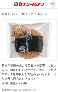 転載元: それでも動く名無し 2026/02/12(木) 11:11:42.44 ID:+Ds+aOms0 ワイの好きなやつ😠 2: それでも動く名無し 2026/02/12(木) 11:12:06.50 ID:opf5vgae0 ツナマヨって一番安いやつじゃなかったっけ?😱 6: それでも動く名無し 2026/02/12(木) 11:14:18.22 ID:jNomqBL60 >>2 昆布とかしそみたいなクソマズ具材でももう200円ないと無理やで…