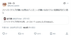 1: 2026/02/13(金) 11:08:47.455 ファイトクラブが嫌いな男はディズニーが嫌いな女ぐらい危険信号だと思う — フキーラ (@fumin_kamin) February 12, 2026 ※関連記事 【動画】ノルウェーさん、とんでもない映画を公開wwwwwwwww…
