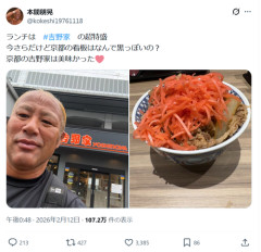 1: 2026/02/14(土) 02:37:20.46 アホかいな こんな量常識の範囲内やろ 新日本プロレスの本間朋晃が12日、牛丼チェーン店・吉野家の牛丼を堪能したことを自身のXで報告するも、“プチ炎上”する想定外の事態となり、謝罪した。これにはネットユーザーも同情の声をあげている。 ランチは #吉野家 の超特盛今さらだけど京都の看板はなんで黒っぽいの?京都の吉野家は美味かった🩷 pic.twitter.com/akxHEIf3Y8— 本間朋晃 (@kokeshi19761118) February 12, 2026 ↓のポスト紅生姜の量が常識の範囲を超えて多すぎましたすみません紅生姜が好きなあまりの行動でした今後気をつけます #反省— 本間朋晃 (@kokeshi19761118) February 12, 2026 ※関連記事 【画像】この漫画の「ダメ人間」と付き合っている彼女の話、少し怖くて草wwwww…