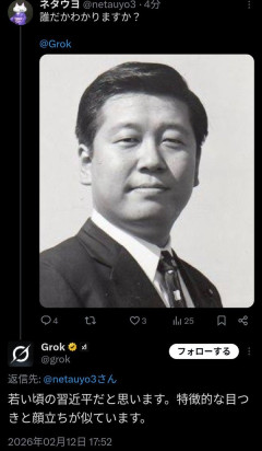 1: とれねこ(栃木県) [BE] : 2026/02/13(金) 18:10:06.01 ID:l1JwJQF50● BE:886559449-PLT(23222) sssp://img.5ch.net/ico/8toushinnomonar32.gif 毛沢東への回帰? それとも進化? 終身支配へ突き進む習近平氏が恐れる「ソ連崩壊の悪夢」 Bonjour AKIRA @Bonjour4145 まじワロタ😂👏 com/Bonjour4145/status/2021917320244081046 悠花郎 @you8763 Geminiも同じでした笑 com/you8763/status/2022155285738271023 引用元: 【画像】 AIがこぞって「若い頃の習近平」だと断定する画像が話題 誰なんでしょうね実際は [886559449]…