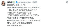 1: 名無しのアニゲーさん 2026/02/14(土) 12:57:31.243 ID:Er.5YXThZ 「一般人扱いさせられてるのなに??」結婚&妊娠発表のティックトッカーが怒り「理解できない」 ティックトッカー、YouTuber、グラビアアイドルのなな茶(29)が14日までに自身のXを更新。一般人扱いに怒りをみせた。なな茶は11日にXで一般男性との結婚と第1子妊娠を公表。「【ご報告】私事ですが、かねてよりお付き合いしていた一般男性と結婚いたしました。また、第一子を授かり安定期に入りましたことをご報告させていただきます」などと報告していた。 その投稿に対し、一般ユーザーから「おめでとうございます! あと、なな茶さんは一般人ではなかったんですね。それも驚きました!」との返信があった。 なな茶は「350万フォロワーいて 雑誌の表紙も何回もやったことあるのに 一般人扱いさせられてるのなに??」と怒りをあらわにした。 「14歳にアイドルデビューして、ドラマも複数出させていただいてるし今日で芸歴15年目なのですが」と主張。「自分が知らない人やインフルエンサーを蔑んで一般人って面白がる風潮 全く理解できない」と投げかけた。 このポストに対し「一般人」という表現をめぐって、さまざま書き込みがあった。 なな茶は浜松市出身で、浜松市観光大使。スリーサイズはB97-W59ーH96センチ。160センチ。…