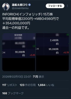 【悲報】有名若手投資家さん、株で3億円の儲け→インサイダー疑惑が浮上してしまう……