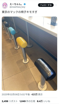 【画像】東京のマクドの椅子、キモすぎるwwww