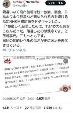 1 名前:名無しさん@涙目です。[] 投稿日:2026/02/14(土) 21:59:20.71 ID:9ifUJbnY0 神奈川で「反自民票」割れ共倒れも…共産・れいわ・社民、野党共闘が岐路に 3 名前:名無しさん@涙目です。[] 投稿日:2026/02/14(土) 22:01:04.36 ID:mcwcvSCS0 そういうとこだろ… まるでわかってない 179 名前:名無しさん@涙目です。[sage] 投稿日:2026/02/14(土) 23:33:37.79 ID:vYaoywWi0 >>3 孫崎の論評をごもっともとか鳩ポッポ並みの頭なんだろうなw 22 名前:名無しさん@涙目です。[sage] 投稿日:2026/02/14(土) 22:05:52.93 ID:cu3NWe7E0 知的レベルじゃなくネット等の発展によりおまえらの隠してたことがバレてきただけ 41 名前:名無しさん@涙目です。[] 投稿日:2026/02/14(土) 22:10:47.16 ID:B2TKwH670 普段多様性やら平和平和いってるやつほど他人を認めようとしないんだよなぁ 35 名前:名無しさん@涙目です。[sage] 投稿日:2026/02/14(土) 22:09:37.24 ID:cBWgkizz0 寧ろあれを当選させようと考える方が頭おかしい 党首討論の際に他全てドン引きしてたの見てないんか? 5 名前:名無しさん@涙目です。[] 投稿日:2026/02/14(土) 22:02:49.78 ID:aaWvhws/0 政策をどうするか聞きたいんであって政争を見たいんじゃないんだよ 33 名前:名無しさん@涙目です。[sage] 投稿日:2026/02/14(土) 22:09:19.01 ID:w/KvXpVH0 >>5 政争ですらない 42 名前:名無しさん@涙目です。[sage] 投稿日:2026/02/14(土) 22:10:59.37 ID:5JPxV2NE0 とにかく怖いこの人 すごく攻撃的 8 名前:名無しさん@涙目です。[] 投稿日:2026/02/14(土) 22:03:21.96 ID:P1D11iyF0 あんなキチガイ 誰が投票すんねん 4 名前:名無しさん@涙目です。[sage] 投稿日:2026/02/14(土) 22:02:30.21 ID:w/KvXpVH0 むしろまともさの証明だろw キチガイ活動家なんか国会にいらね 10 名前:名無しさん@涙目です。[] 投稿日:2026/02/14(土) 22:03:40.34 ID:Iix3US4P0 共産党…組織の総力を挙げて当選4人 れいわ…自民大勝のおこぼれで前科者1 社民党…逆風の中踏みとどまって現状維持0 左の票を集めても大石が当選する見込みはなさそう 102 名前:名無しさん@涙目です。[] 投稿日:2026/02/14(土) 22:42:06.80 ID:jjV+UEZh0 >>10 社民党w 28 名前:名無しさん@涙目です。[] 投稿日:2026/02/14(土) 22:08:04.52 ID:v3HK2+640 >>10 今回高市支持だったけど高市大勝よりも大石落選が1番嬉しかったなwありゃあ人目に出したら駄目でしょ 24 名前:名無しさん@涙目です。[sage] 投稿日:2026/02/14(土) 22:06:49.26 ID:/AUwviDD0 共産党も批判してるから共産党員がブチギレてる 悲劇のヒロイン気取りのれいわさん 106 名前:名無しさん@涙目です。[sage] 投稿日:2026/02/14(土) 22:44:48.68 ID:FqZIgt790 >>24 市民て 173 名前:名無しさん@涙目です。[] 投稿日:2026/02/14(土) 23:29:26.45 ID:IhtSx54l0 >>24 テロ支援かな 52 名前:名無しさん@涙目です。[] 投稿日:2026/02/14(土) 22:13:22.49 ID:W3u/b1Jc0 >>24 れいわと共産党なんて出現したのが昭和か令和かの違いしかないじゃん。 どこまで基地外集団なんだよ。 104 名前:名無しさん@涙目です。[] 投稿日:2026/02/14(土) 22:42:14.89 ID:W3u/b1Jc0 大石って反社と繋がっていたような… 107 名前:名無しさん@涙目です。[] 投稿日:2026/02/14(土) 22:44:57.52 ID:8Q6rdJF30 >>104 関ナマ 78 名前:名無しさん@涙目です。[sage] 投稿日:2026/02/14(土) 22:24:23.84 ID:kG1/YaFQ0 81 名前:名無しさん@涙目です。[] 投稿日:2026/02/14(土) 22:25:59.81 ID:iDbYZc1V0 >>78 え!この人だったのか… 88 名前:名無しさん@涙目です。[sage] 投稿日:2026/02/14(土) 22:28:50.76 ID:TI+cSEjb0 >>78 サービス残業どころか一般業務の必要すらない御身分だからなw 86 名前:名無しさん@涙目です。[] 投稿日:2026/02/14(土) 22:27:53.94 ID:W3u/b1Jc0 >>78 なんでこんな奴が公務員になれるんだろう? 207 名前:名無しさん@涙目です。[] 投稿日:2026/02/15(日) 00:08:36.14 ID:Rnhy2WHG0 >>86 むしろ公務員しかなれなかったんだろ 阪大工学部の院出てて民間に就職できないってよっぽどだぞ 72 名前:名無しさん@涙目です。[] 投稿日:2026/02/14(土) 22:22:22.54 ID:W3u/b1Jc0 18年前の大石 VS橋下「どんだけサービス残業やってると思ってるんですか!?」(当の本人はしてない) ちょっと前の大石 VS杉田「杉田水脈さん裏金議員じゃないですか!!」(杉田:5年間で1500万、大石:1年間で1200万) 基地外はいつまでたっても治らないんだなあ~ 112 名前:名無しさん@涙目です。[] 投稿日:2026/02/14(土) 22:46:15.58 ID:47Y5hxCm0 杉田水脈憎しで口を開けば罵声ってのは誰が見ても嫌なヤツ 今回の選挙は罵声議員の大半が消えて良かった 32 名前:名無しさん@涙目です。[] 投稿日:2026/02/14(土) 22:09:08.13 ID:UjgDYuKg0 大阪5区は自民党も名前が知れてる杉田水脈さんを投入してきて維新と票が割れるとも言われていた 蓋を開けてみたら維新圧勝だったけど 19 名前:カンクン(大阪府)[sage] 投稿日:2026/02/14(土) 22:05:02.63 ID:BfIaJAcP0 ほんまに大阪ではめちゃくちゃ嫌われてるし 116 名前:名無しさん@涙目です。[sage] 投稿日:2026/02/14(土) 22:47:53.36 ID:9vGN6g2t0 日本人は基本賢いからあんまパヨクのデモに 乗せられたりしないよね。外国はその辺馬鹿ばかりだけど(´・ω・`) 99 名前:名無しさん@涙目です。[] 投稿日:2026/02/14(土) 22:40:24.43 ID:8Q6rdJF30 せめて一回でも小選挙区で当選してから言ってくれ 119 名前:名無しさん@涙目です。[] 
