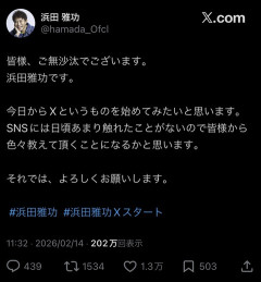 浜田雅功、Xアカウント開設WWWWWWWWWWWWWWWWWWWWWWWWWWW