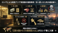 1: 名無し 2026/02/15(日) 13:10:24.58 ID:o9Rp2WqM0 ロシアが東南アジアの貧しい若者を誘い出し「人間地雷探知機」として前線に投入していることが分かった。ブローカーらはSNSを通じて「月2000-2300ドルの給与とロシアの市民権を提供する」と持ちかけ、若者がロシアに到着すると同時にパスポートとスマートフォンを没収。ロシア語の分からないことを悪用し、清掃業務契約書と偽ってロシア軍入隊志願書に署名を強要しているという。 これらの若者はわずか1週間ほどの訓練で最前線に送り込まれ、敵の射撃位置を把握するための「おとり」や、地雷原を先頭で歩かせる「人間地雷探知機」として消耗されている。前線に投入された外国人兵士の平均生存時間はわずか72時間という報告もある。 朝鮮日報日本語版 ■要約 ・高額給与と市民権を餌に東南アジアの貧困層をロシアへ誘引 ・入国直後に旅券を没収し内容を偽った軍入隊志願書へ署名を強要 ・おとりや人間地雷探知機として最前線に送られ生存時間は平均72時間 ・フィリピンは搭乗禁止措置で保護を図る一方ラオスは工兵隊派遣を準備 ・先月時点で128カ国から1万8000人以上の外国人がロシア軍に入隊 資本主義が良くて共産主義が悪いという謎の風潮 中国製の粗悪で低品質なロボットが年会参加中に痙攣してそのまま死去???? 水産庁、中国漁船の船長を釈放…