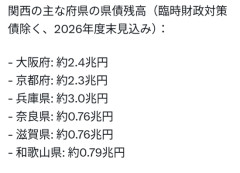1: 名無しのスコールさん 2026/02/14(土) 21:38:58.57 ID:VLuMkaF60St.V 関西の府県の借金額 人口1人あたりの借金額 引用元: ・…