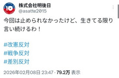 1 名前:名無しさん@涙目です。[] 投稿日:2026/02/13(金) 21:33:17.61 ID:qa/sUNYC0 デビューから44年、まだまだ現役アイドル?との質問に「自分では“私はアイドルです”って歌の中でしか言ったことない。 違和感とは言わないけど、若い時にアイドルって何だろうって思って調べたら、偶像って出てきて。 存在自体がジャンルなんだと納得して。だったら、どんな音楽をやっても、どんな洋服を着てもいいんじゃない?って持論を自分の中で見つけて。 それでいろんなことをチャレンジできた」とコメント。 その上で「そういう意味では未だに私はアイドルなのかもしれない」と話した。 2 名前:名無しさん@涙目です。[sage] 投稿日:2026/02/13(金) 21:33:34.44 ID:fvA/vk7Q0 精神科へ 21 名前:名無しさん@涙目です。[] 投稿日:2026/02/13(金) 21:40:04.15 ID:+STBnbIj0 晩節を汚す 134 名前:名無しさん@涙目です。[sage] 投稿日:2026/02/13(金) 22:19:21.82 ID:3HSp+ht20 なんか悲しいなあ 82 名前:名無しさん@涙目です。[sage] 投稿日:2026/02/13(金) 21:59:28.31 ID:BAt5tIgJ0 すっかりアレな人になったな 187 名前:名無しさん@涙目です。[sage] 投稿日:2026/02/13(金) 22:42:09.41 ID:IiF13MQg0 落ち目の芸能人ほど左に傾くよな 3 名前:名無しさん@涙目です。[] 投稿日:2026/02/13(金) 21:34:04.28 ID:Ek3lqN3S0 共産党工作員か? 柴咲コウもなんか声明出すんか? 6 名前:名無しさん@涙目です。[sage] 投稿日:2026/02/13(金) 21:34:16.97 ID:yL5eLt410 パョンパョン 241 名前:名無しさん@涙目です。[] 投稿日:2026/02/13(金) 23:36:18.52 ID:3fn0XRz30 >>6 いまだにそれ、どう読むのかがわからないw 26 名前:名無しさん@涙目です。[sage] 投稿日:2026/02/13(金) 21:41:31.60 ID:Yt2YqWql0 今日戦争始まったっけ? 63 名前:名無しさん@涙目です。[sage] 投稿日:2026/02/13(金) 21:50:05.40 ID:Y6nwxkW30 今回は止められなかったけどってずいぶん呑気だな 170 名前:名無しさん@涙目です。[sage] 投稿日:2026/02/13(金) 22:32:19.36 ID:nR85trPP0 何でこういう人達って自分の気に入らない人は戦争したがってると思うの? 172 名前:名無しさん@涙目です。[sage] 投稿日:2026/02/13(金) 22:33:09.02 ID:LLdOL3Rn0 >>170 想像力が乏しいから 174 名前:名無しさん@涙目です。[sage] 投稿日:2026/02/13(金) 22:35:19.20 ID:ltS+/Ruj0 >>170 案件だから 8 名前:名無しさん@涙目です。[] 投稿日:2026/02/13(金) 21:35:11.92 ID:CzuiARaB0 戦後改憲してない国って日本ぐらいなんだけどそれについては? 38 名前:名無しさん@涙目です。[] 投稿日:2026/02/13(金) 21:44:28.88 ID:Q46glJtb0 なんでパヨはアメリカに押し付けられた憲法を後生大事にしようとするんだろう 45 名前:名無しさん@涙目です。[] 投稿日:2026/02/13(金) 21:46:38.94 ID:LFkmcr2F0 >>38 アメポチがーとか白目剥くクセにね 46 名前:名無しさん@涙目です。[sage] 投稿日:2026/02/13(金) 21:47:06.79 ID:bZLRjafw0 >>38 アメリカというよりもGHQの容共派が作ったのが現行憲法だからな GHQ容共派は連中の教祖みたいなもんだから教典の護持に必死 62 名前:名無しさん@涙目です。[] 投稿日:2026/02/13(金) 21:49:55.33 ID:LFkmcr2F0 >>46 なるほどね… 子供の頃の学研かなんかの副読本でやたら持ち上げてたんだよな アメリカで実現できなかった平和憲法を優秀なスタッフが日本で実現させた素晴らしい憲法なんです、なんてさ ガキの頃信じてたよ テヘ 164 名前:名無しさん@涙目です。[] 投稿日:2026/02/13(金) 22:28:00.81 ID:WOKbUSzB0 >>38 ナンミョメンにそれ言ったら 憲法作成する際に日本人が関わった❗ って幻想を信じてたよ 近衛文麿は関わろうとしたけどGHQに排除されたんだけども (´・_・`) 平行線だったな話 151 名前:名無しさん@涙目です。[] 投稿日:2026/02/13(金) 22:24:37.03 ID:dz9vx6Wo0 戦争反対ってどちらかというと中国に対して言うべき言葉だろ 150 名前:名無しさん@涙目です。[] 投稿日:2026/02/13(金) 22:24:33.25 ID:dKISuThg0 なんで防衛力増加が戦争に向かうと考えてしまうのか 防衛力増加で戦争を抑止することが理解できないのか? 158 名前:名無しさん@涙目です。[sage] 投稿日:2026/02/13(金) 22:26:13.18 ID:xuxhhPFW0 >>150 日本が中国とかに侵略戦争を仕掛けようとしてると思ってんだろ 病んでますなあ 278 名前:名無しさん@涙目です。[sage] 投稿日:2026/02/14(土) 00:02:37.99 ID:foGR4Dso0 戦争賛成とか戦争しようとしてる人なんて居ないのに頭おかしい人達にはそういう人が見えちゃってるんだよね… 幻覚見てるんだと気付いてほしいけど無理なんだよなぁ… 30 名前:名無しさん@涙目です。[sage] 投稿日:2026/02/13(金) 21:42:01.65 ID:bZLRjafw0 お前らアカパヨは止める側じゃねえよ国民によって止められる側だ勘違いするなオワコン 194 名前:名無しさん@涙目です。[sage] 投稿日:2026/02/13(金) 22:53:09.48 ID:FfqBRhzP0 こういう人たちって他国が攻めてきたらどうするのが正解だと思ってるのかな? 結局のところ左翼ってそこを提示できないから負けたんだよね 196 名前:名無しさん@涙目です。[] 投稿日:2026/02/13(金) 22:55:09.24 ID:Hfy/cEmz0 >>194 無抵抗で降伏攻めた国に大人しく従うんだとよ 199 名前:名無しさん@涙目です。[sage] 投稿日:2026/02/13(金) 22:56:37.35 ID:3UKlzSfK0 >>196 どっかの国を攻める時の尖兵にされるだけじゃね 201 名前:名無しさん@涙