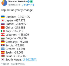 【画像】日本、戦争してないのに人口がアホみたいに減る....