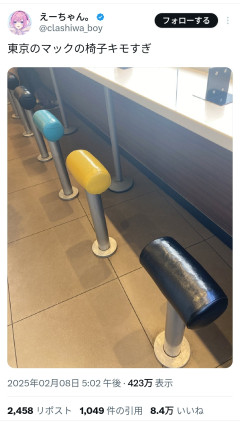 【画像】東京のマクドの椅子、キモすぎる…